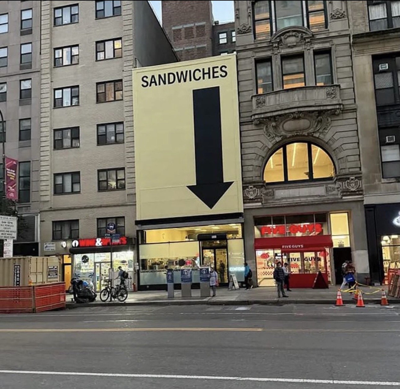 • 어제 인스타에서 본 사진 한 장. 뉴욕에 한 샌드위치 가게의 옥외 광고다.